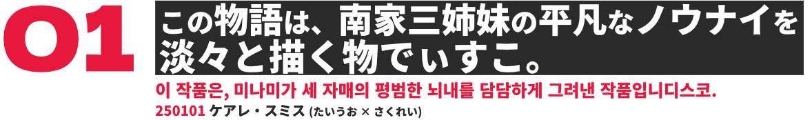 この物語は、南家三姉妹の平凡なノウナイを淡々と描く物でぃすこ。